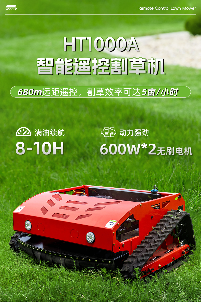 HT1000A遙控割草機(jī)滿油續(xù)航可達(dá)8-10小時