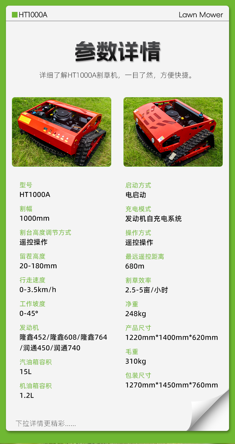 HT1000A遙控割草機(jī)參數(shù)