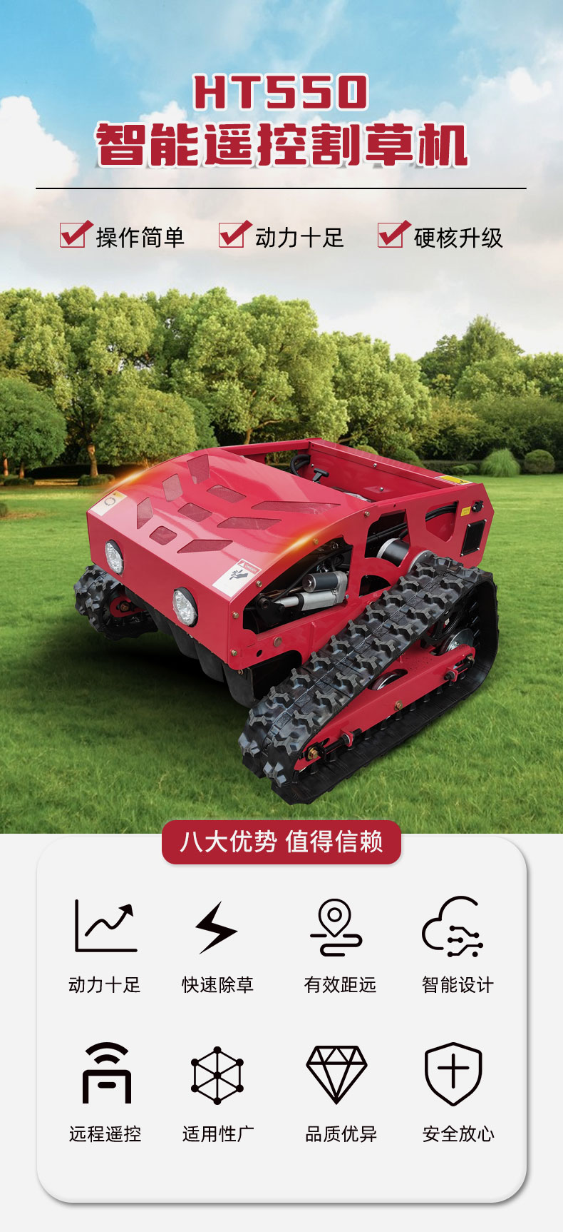 HT550A遙控割草機采用意大利旋切技術工藝和歐美作業(yè)環(huán)境結合的設計原理,智能除草,簡單方便。