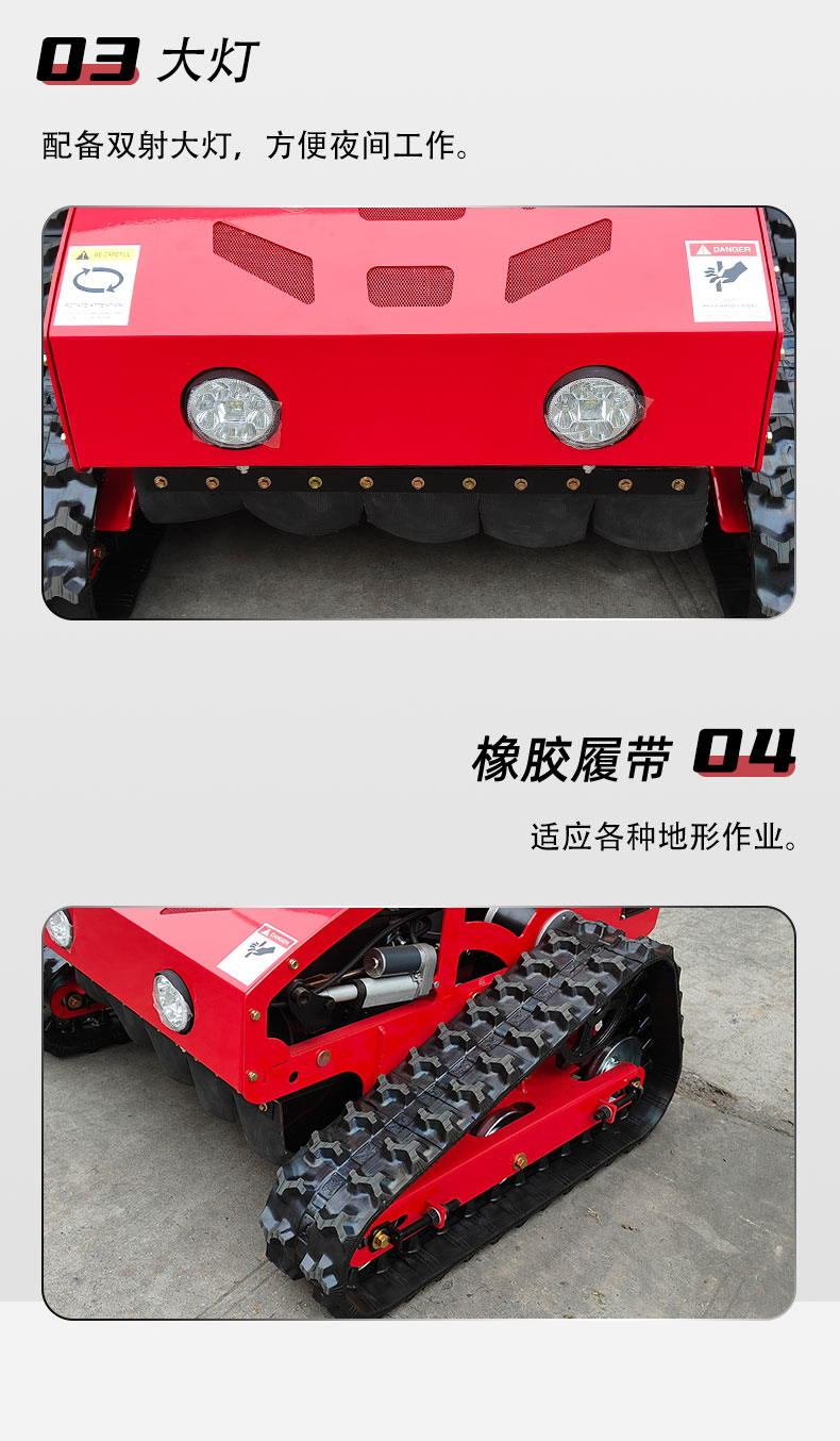 HT550A遙控割草機選用重慶隆鑫品牌四沖程發(fā)動機,標準作業(yè)1小時可除草1300-2000平方米果園除草效率高。
