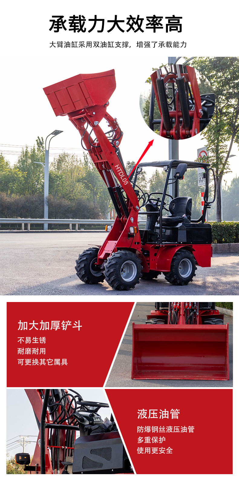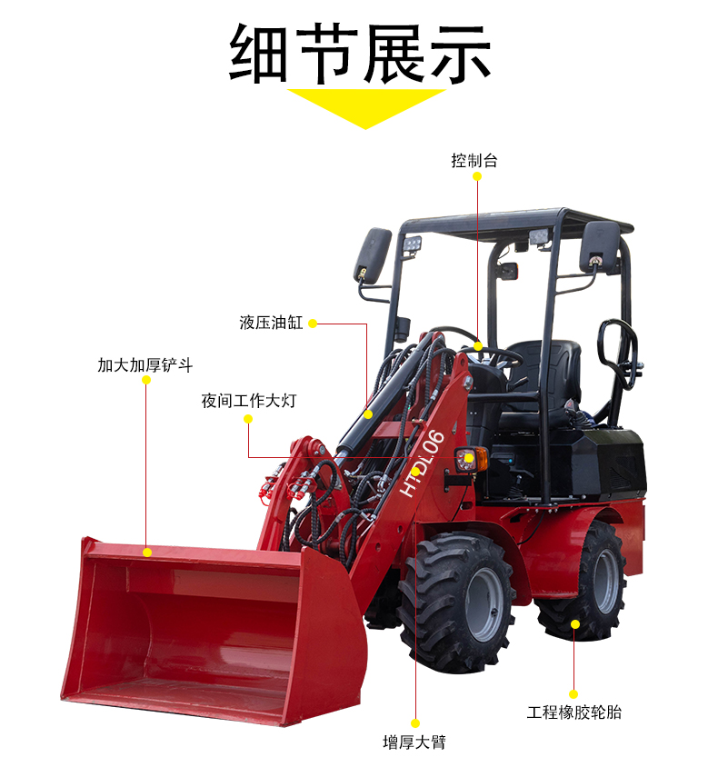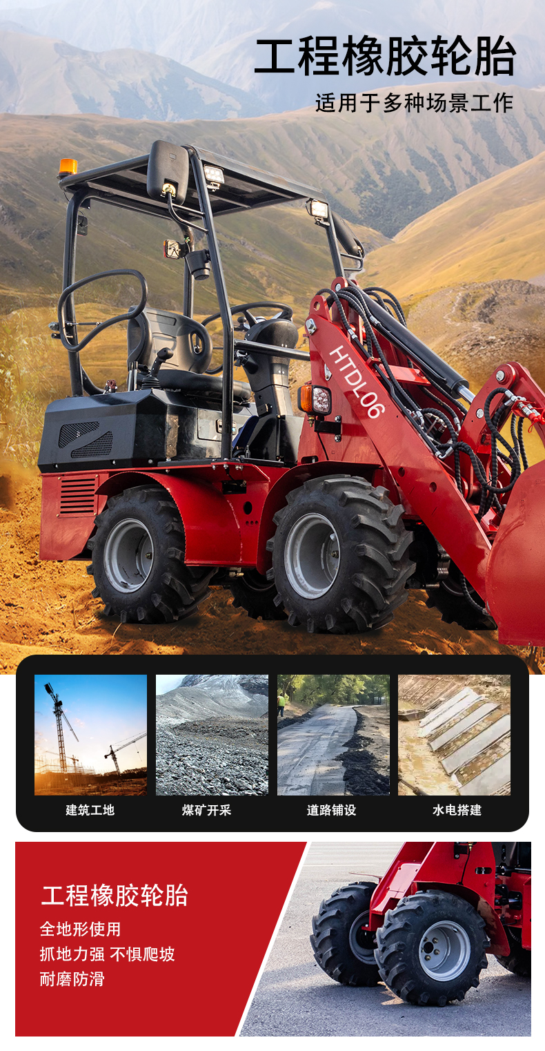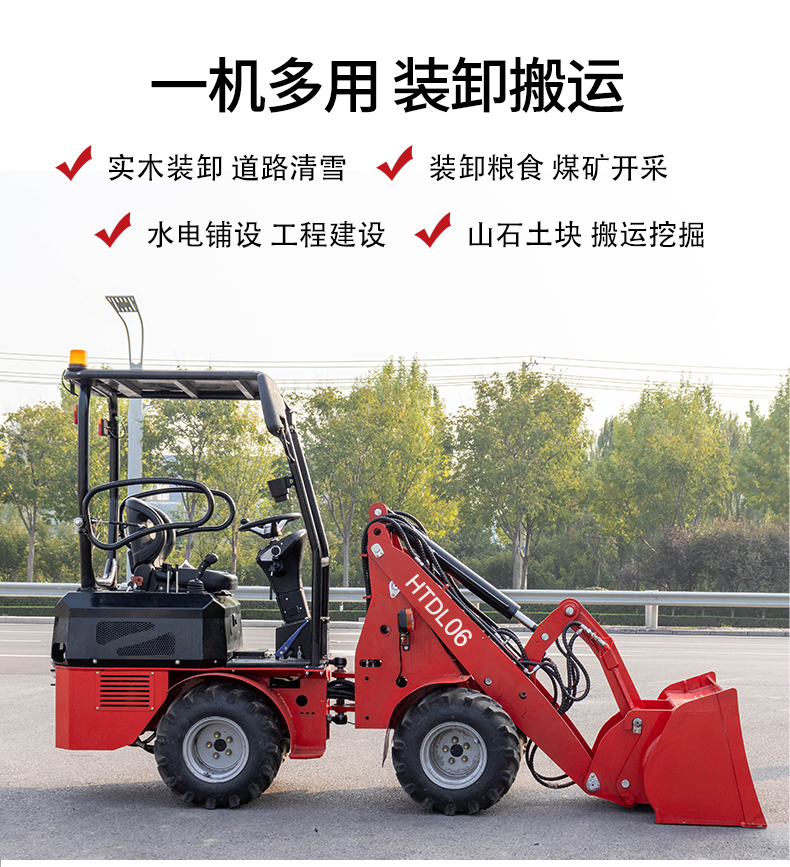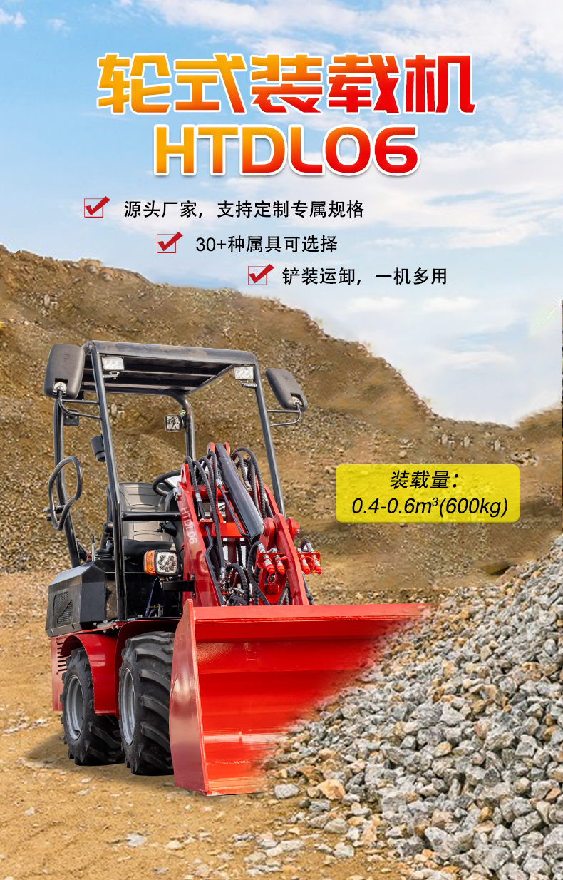 HTDL06 輪式裝載機輕松裝卸,不費吹灰之力 材料如泥土和石頭,還可以進行輕型開挖工作。