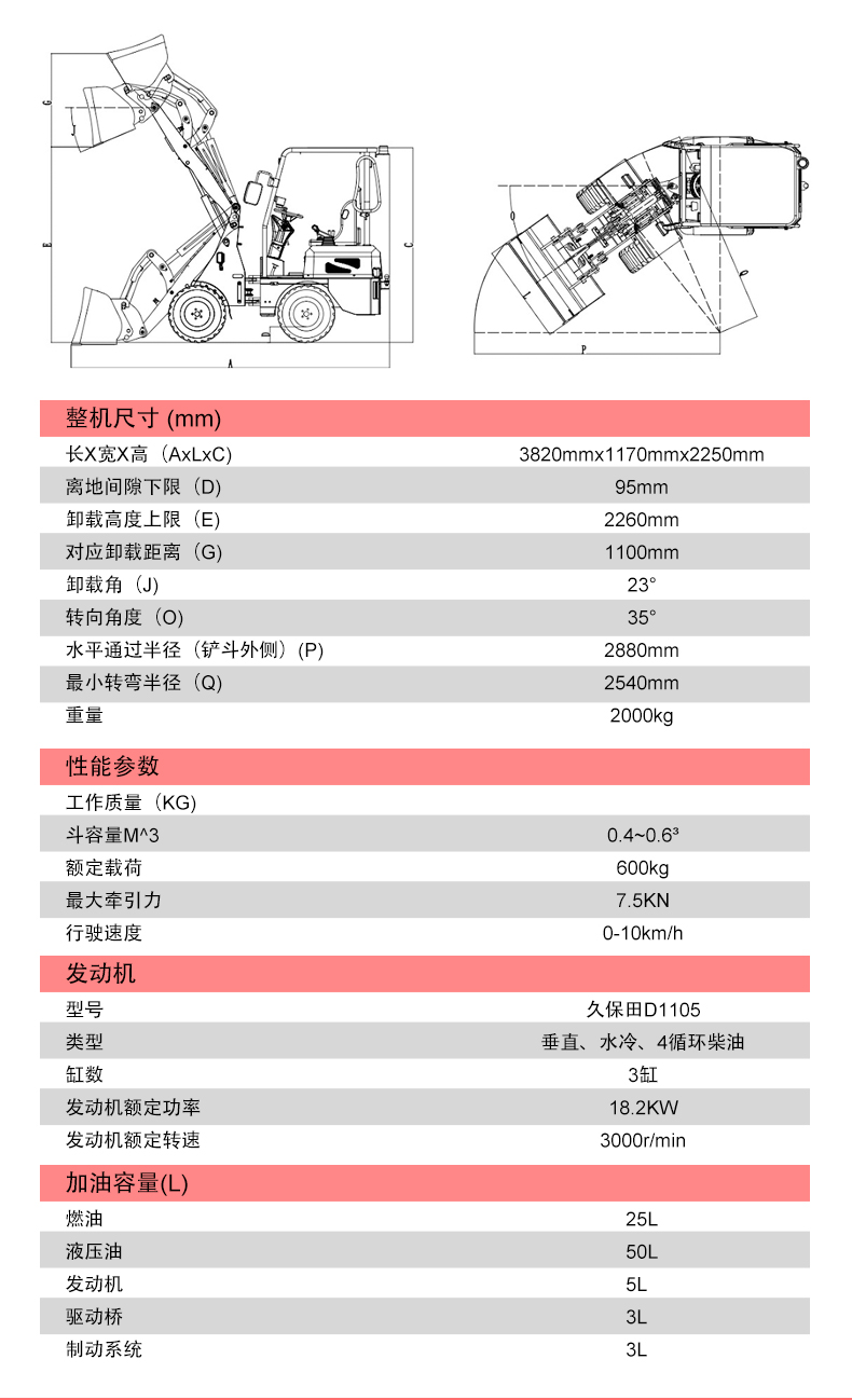 HTDL06 輪式裝載機參數(shù)