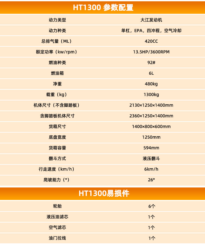 HT1300 多功能翻斗車參數(shù)