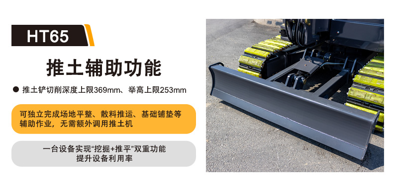 8. 推土輔助功能實用:推土鏟最大切削深度369mm、最大舉高253mm,可獨立完成場地平整、散料推運、基礎鋪墊等輔助作業(yè),無需額外調用推土機,一臺設備實現(xiàn)“挖掘+推平”雙重功能,提升設備利用率。